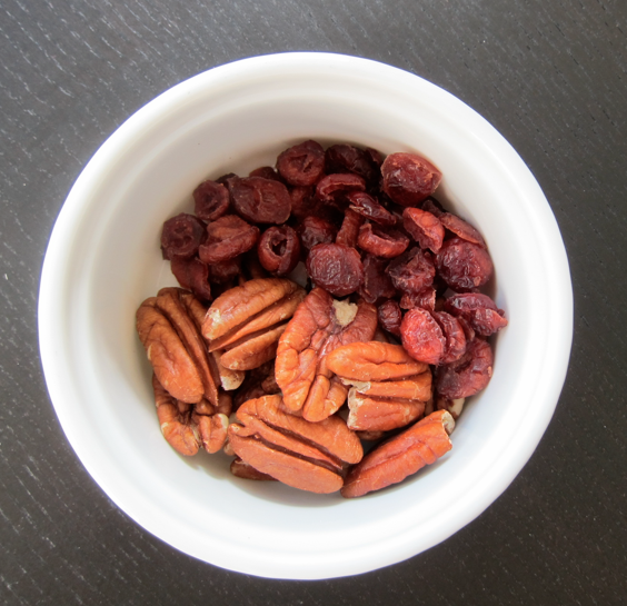 This combination of carbohydrate, protein, and fat is an example of a great snack- it’ll help keep your blood sugar stable between meals, and prevent cravings or overeating later in the day. Just remember packaged dried fruit tends to have more sugar than you think.