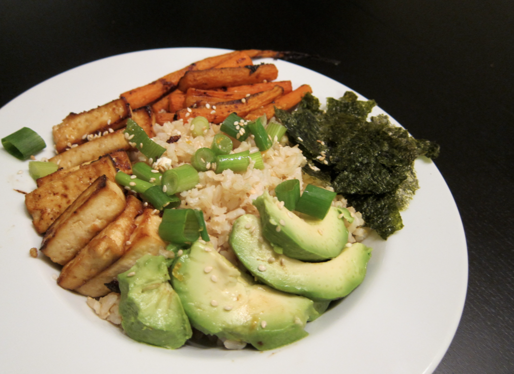 heidi swanson’s brown rice sushi bowl, amped up with classic GC tofu