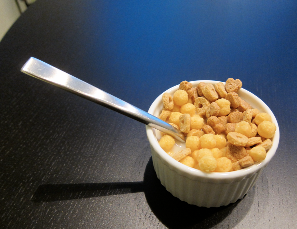 cereal (mix of pb puffs + kashi heart to heart — both vegan) + almond milk