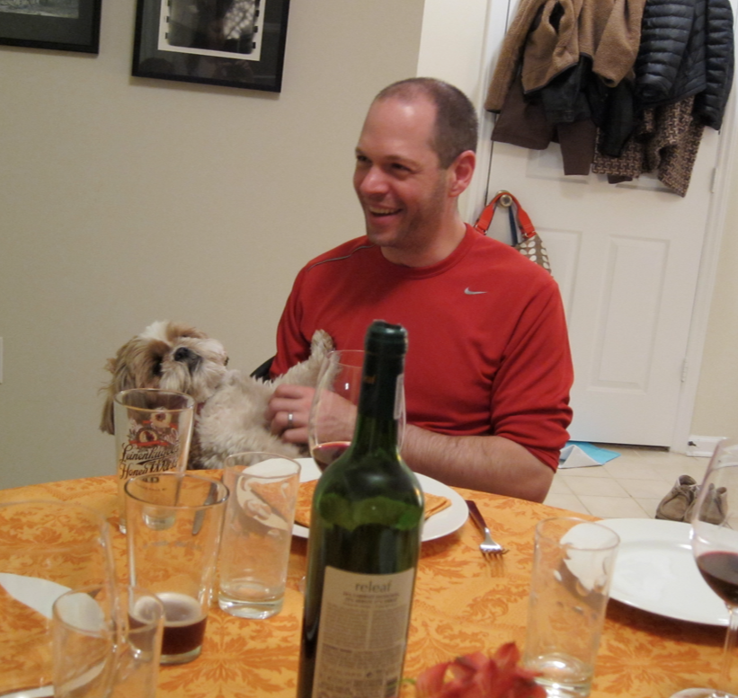 after dessert, much talking and laughing ensued (although no more yoga). eventually both major deegan and josh ended up like this: