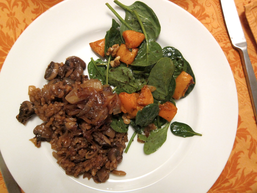 baked mushroom risotto with caramelized onions + roasted butternut squash salad