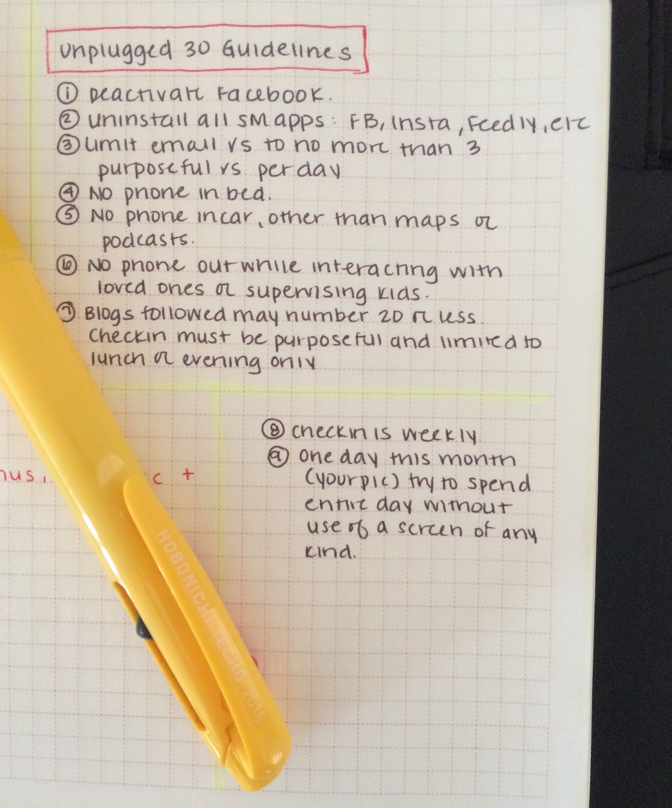 6. No phone use (or even out) while interacting with loved ones or supervising kids. It may be brought out to take an occasional photo (which will not make it to Instagram until March, at the earliest.)