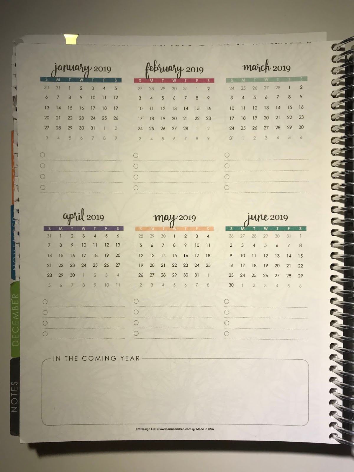 I like this “Plan 2019” page and honesty did not realize it was there – it would have been very useful as dates accumulate that need to be transferred into next year’s planner! Maybe I’ll start using it now.