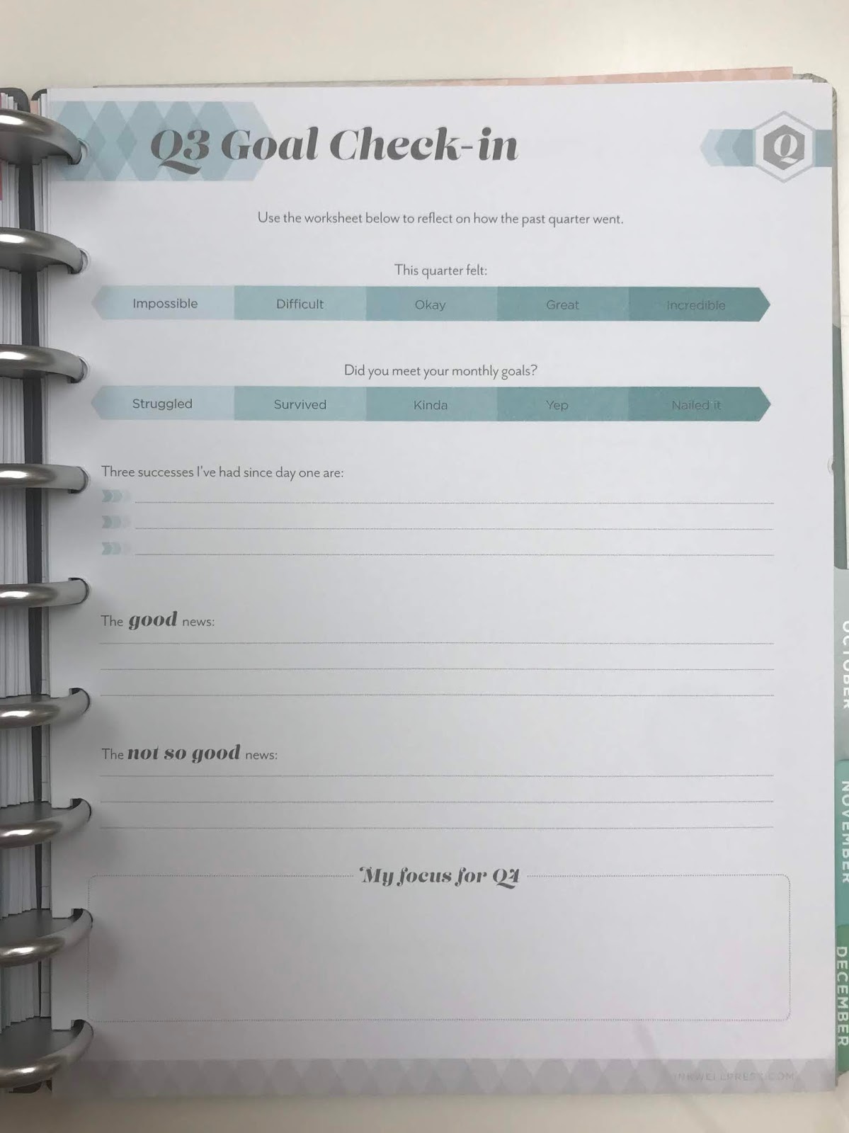 I wasn’t going to do a review this morning (just so much going on!) but then a) I woke up inexplicably at 4:45 AM and b) I saw this beauty sitting there and realized that since it’s a goal-setting planner, now is the time to take the plunge. Of course, you could wait until January to set goals – but what is the fun in that?
