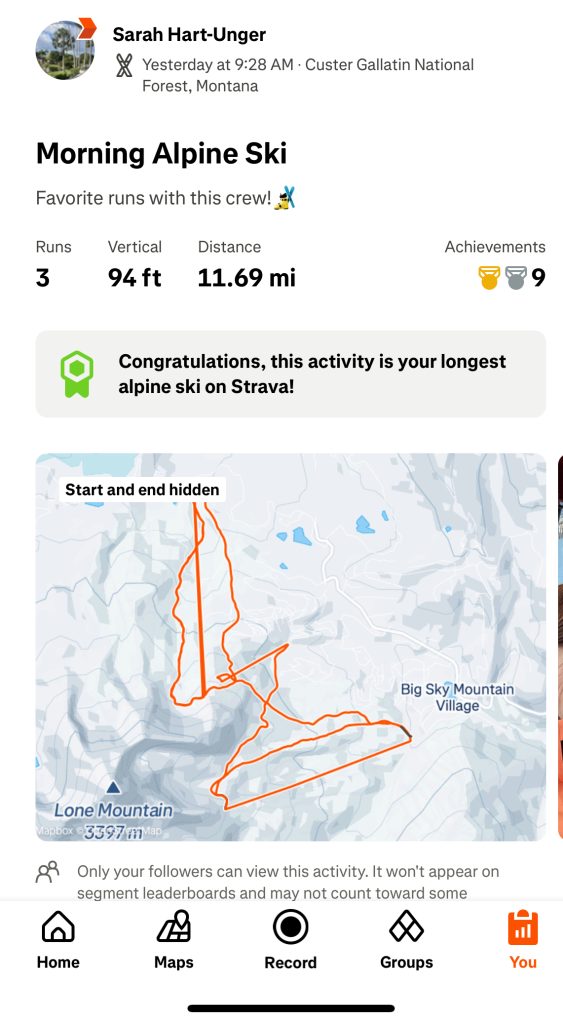 This is awesome, Sarah! Glad you really gave your body a big rest post race, and got to enjoy skiing! I’m not surprised at all about skiing being lower heart rate…I agree that it’s more like extended strength training (bodyweight!) than aerobic exercise. It’s still exhausting! And good for you, just in a different way. Hope your travel home went well!!