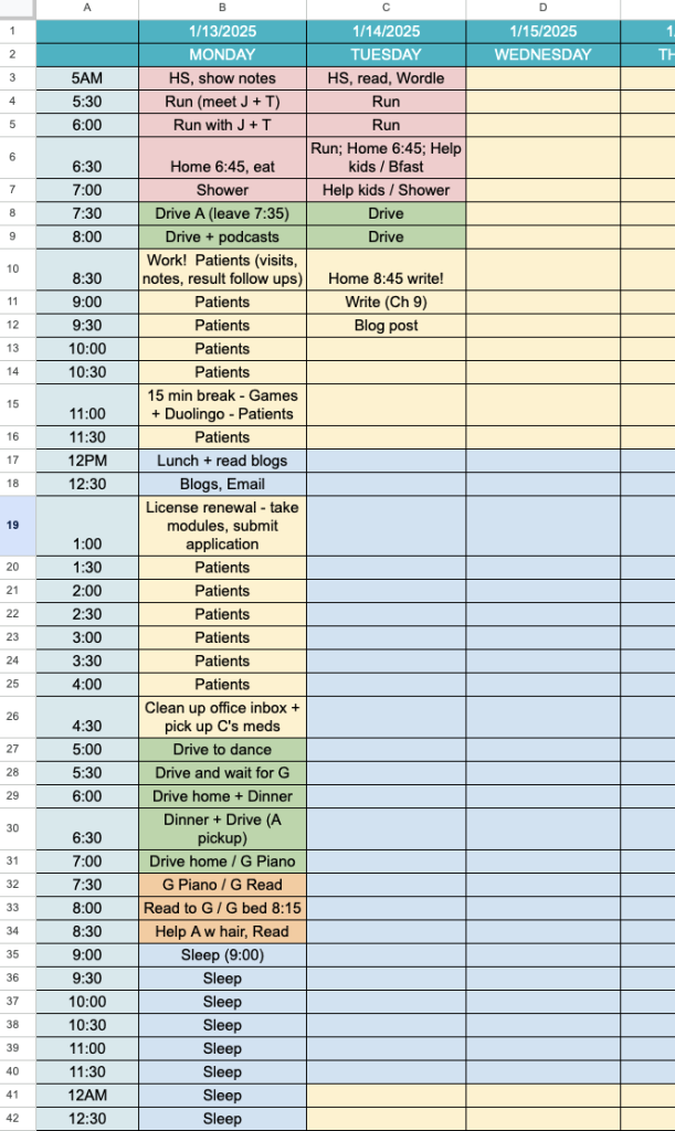 Gillian this makes me want to reach through the internet and write “patients” on your 8-10:30 cells. HA!