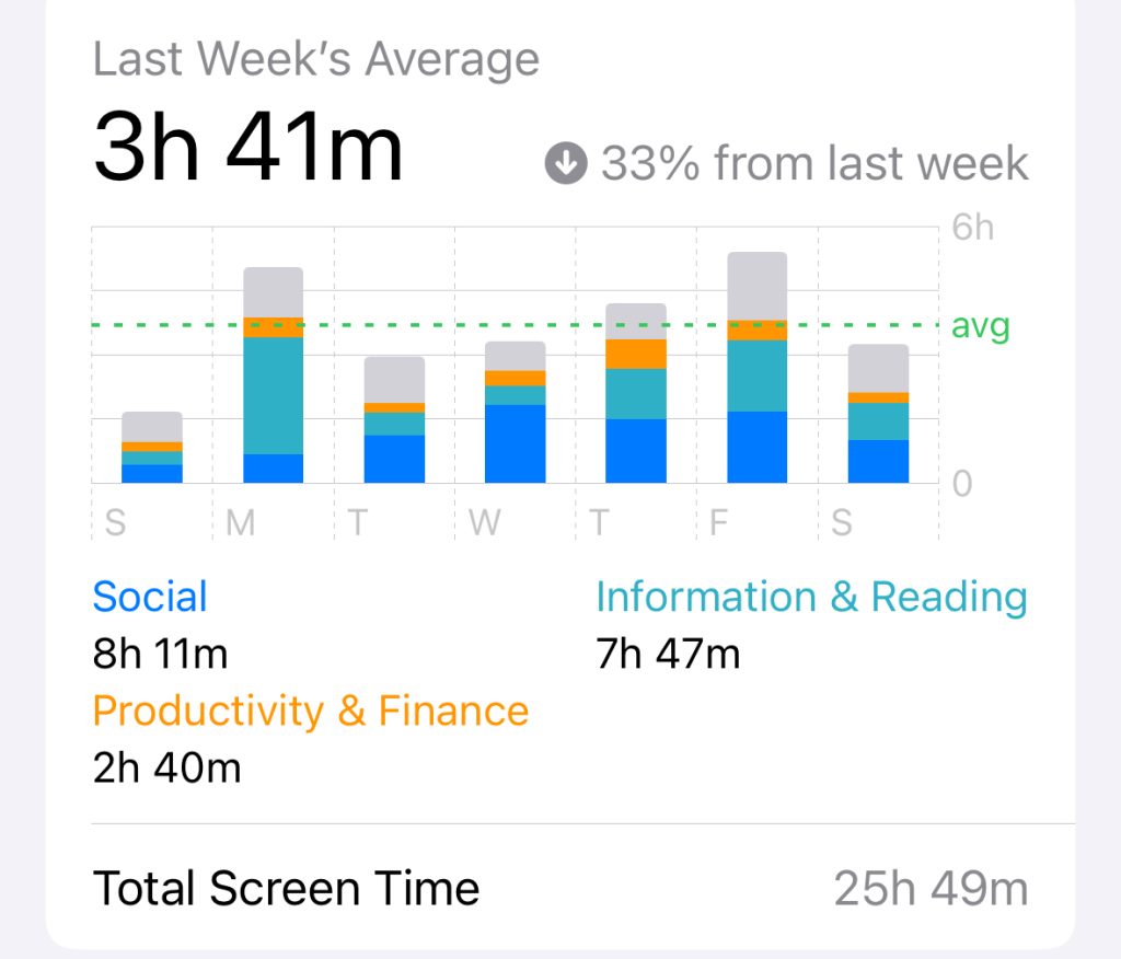 Behold last week’s screen time stats. I am not proud of these.