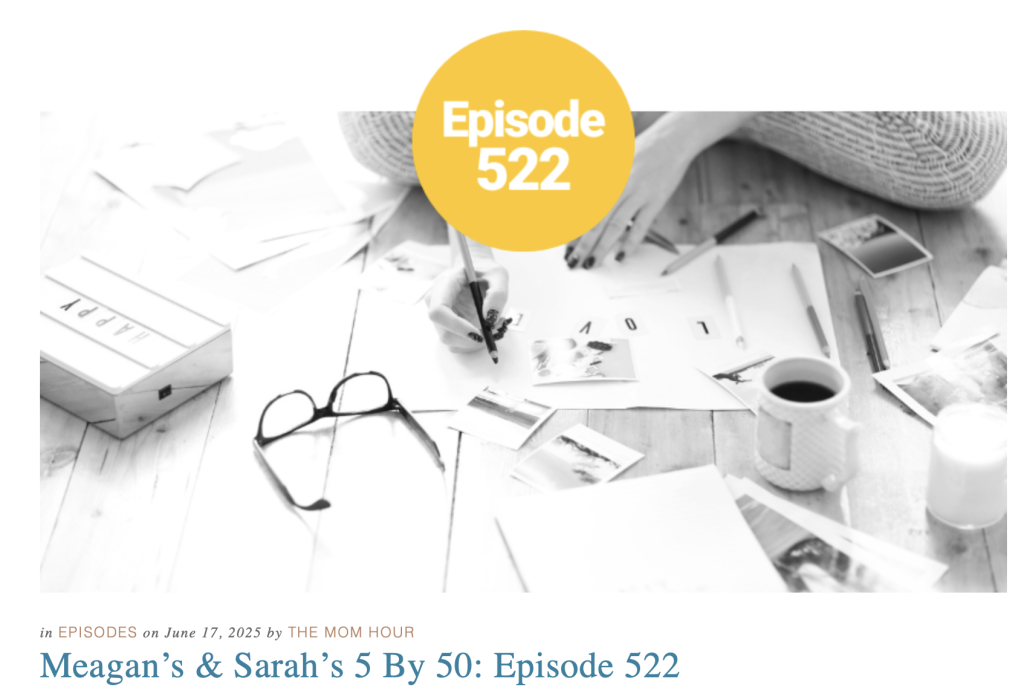 Loved this concept from the most recent Mom Hour ep (it’s their penultimate episode too — would be really sad except that thankfully they started a new fun venture, Midlife Lady Leisure Pursuits, which I am excited to give a listen)!