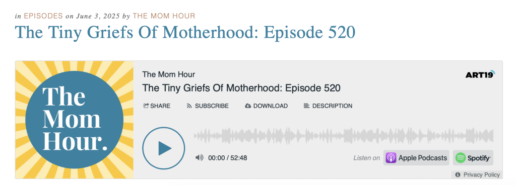 I need to do this exercise and listen to this episode. Today is Minnie’s last day of preschool and I am SO SAD. We started at this school ELEVEN YEARS AGO when Coop was 2.