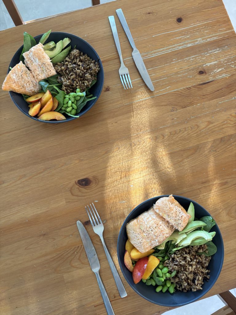 Last night I made dinner — PrepDish inspired but greatly enhanced by peaches a friend sent me from California!