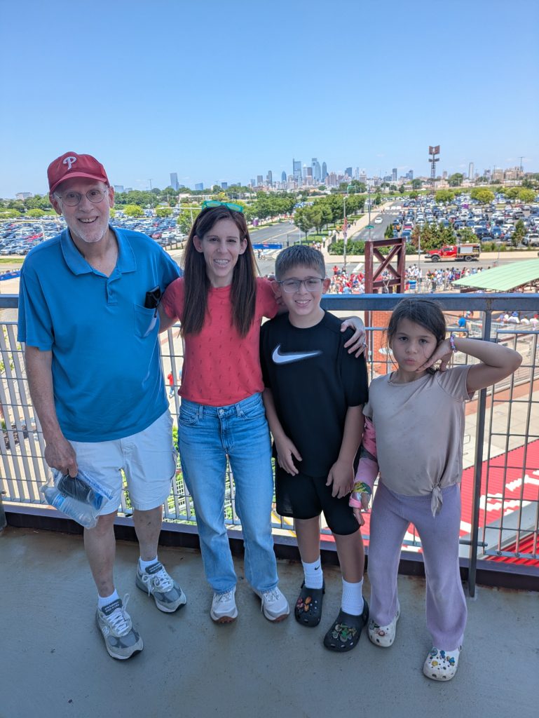 We spent Friday – Sun (left 6:45 AM from MIA on Friday and arrive back in MIA at 9:30 PM on Sunday). Short, but I had to work 7/3 and Josh had to work 7/7, so that’s what we settled on. Our kids are pretty used to early rises for flights and did really well! Our only hiccup was having to wait 90 minutes for a car at Budget (which I feel is . . . much too long for a car reserved and prepaid a month prior?). But it all worked out and we got to my parents’ just in time to grab my dad and head to the Phillies game.