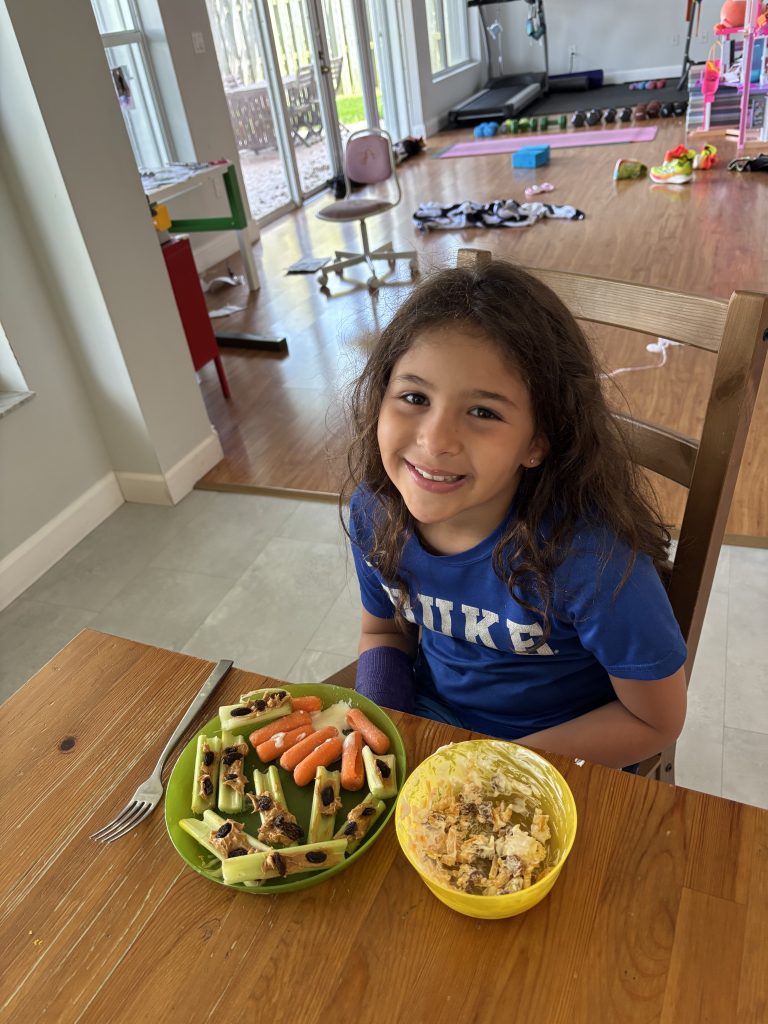 Then G proudly made lunch. Don’t even ask what’s in the bowl. I was pretty impressed with her ants on a log though!