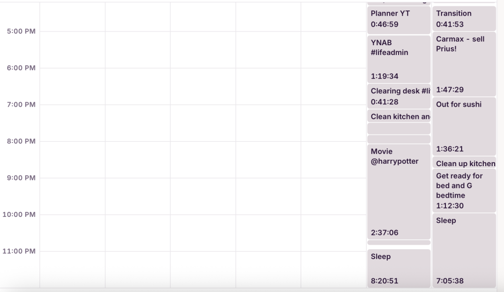 AND YET: I am terrible at doing this. I start off strong (and I know exactly how I tend to spend my mornings!) but somewhere in there I get distracted, forget to track, and somehow I find myself going to bed without a clear idea of anything that took place after ~12 pm or so.