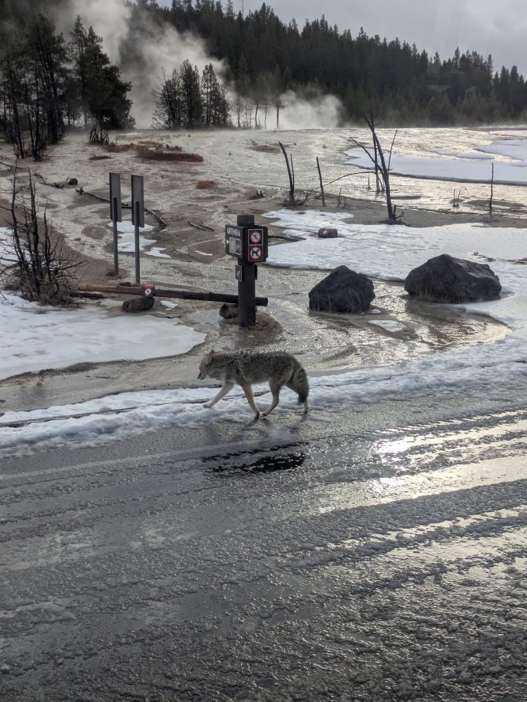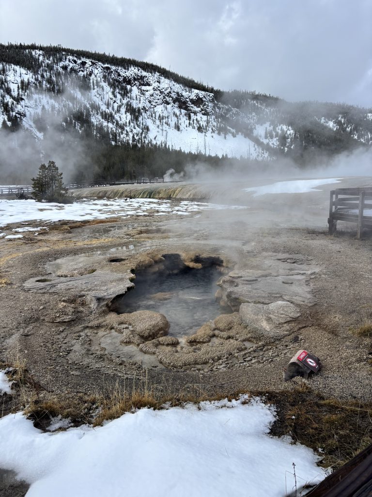 From ~8:30 to 3:30, we explored the park via snow coach, stopping at various areas to see some really amazing sites and ending at Old Faithful. My favorite part was a walkway around all of these really cool geothermal features! I have never seen anything like it.