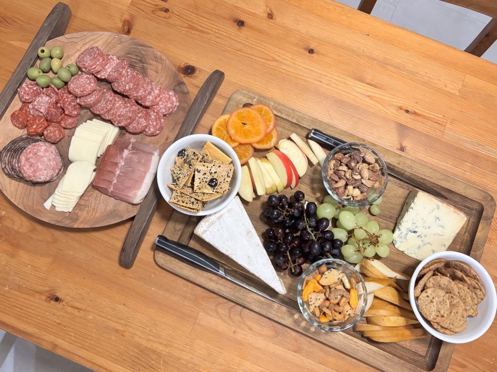 Dinner was excellent (just went with charcuterie as main meal), and we had some fun answering reflection question together while snacking endlessly on this board: