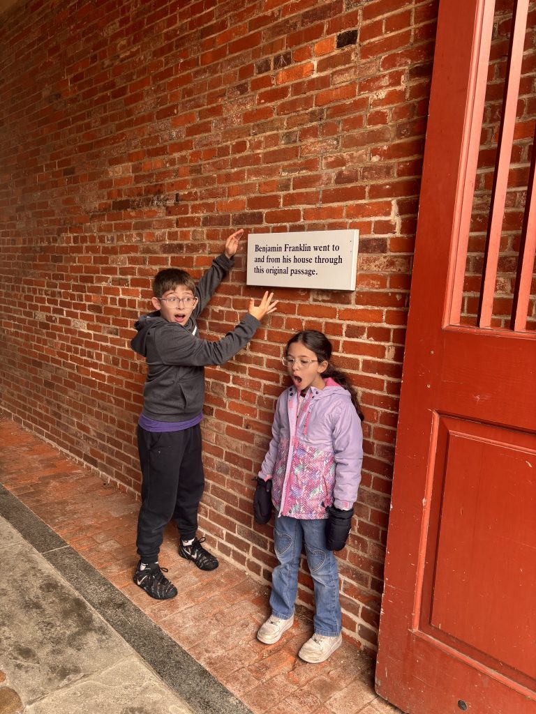 The Mint was fun (I had been before, but I don’t think C has, or at least not in recent years). And on the way, we walked by this alley that was apparently a shortcut for Ben Franklin: