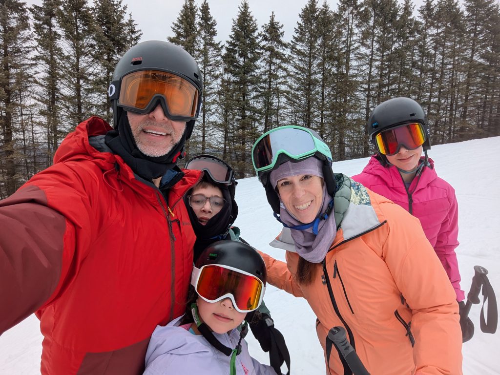 Thursday we had a relaxed morning and then headed to Blue Mountain for skiing! I had definitely skied there as a teen/tween though in my mind all of the Pocono mountains are mixed up (Big Boulder / Jack Frost / Blue / Montage / Shawnee / Camelback / etc). (My family did not ski, but I learned through the school ‘ski club’ which took bus trips on various weekends at really low cost. I also tagged along with one of my friend’s family on their day trips up, too.)