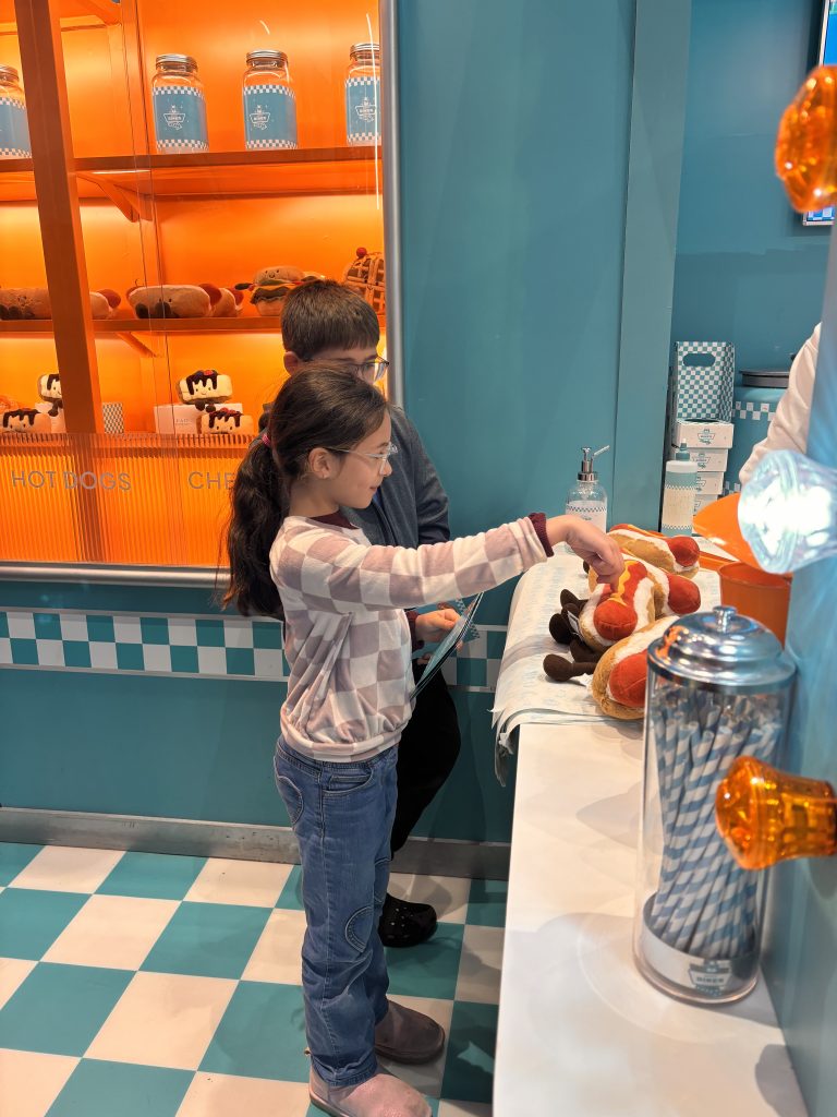 We were there about an hour and a half and then hit the road for NYC, with a quick lunch stop on the way (Subway, classic road trip fare obviously) because we had tickets to the FAO Schwartz Jellycat Diner Experience. I learned about this Experience from the kids, and it is a Whole Thing. You have to get reservations a specific number of days in advance, and then they are released in a 1 hour window rather than a specific time so you have to dedicate up to an hour of your day to continually checking and refreshing for tickets. I remember telling Laura we had to finish recording so I could start attempting!